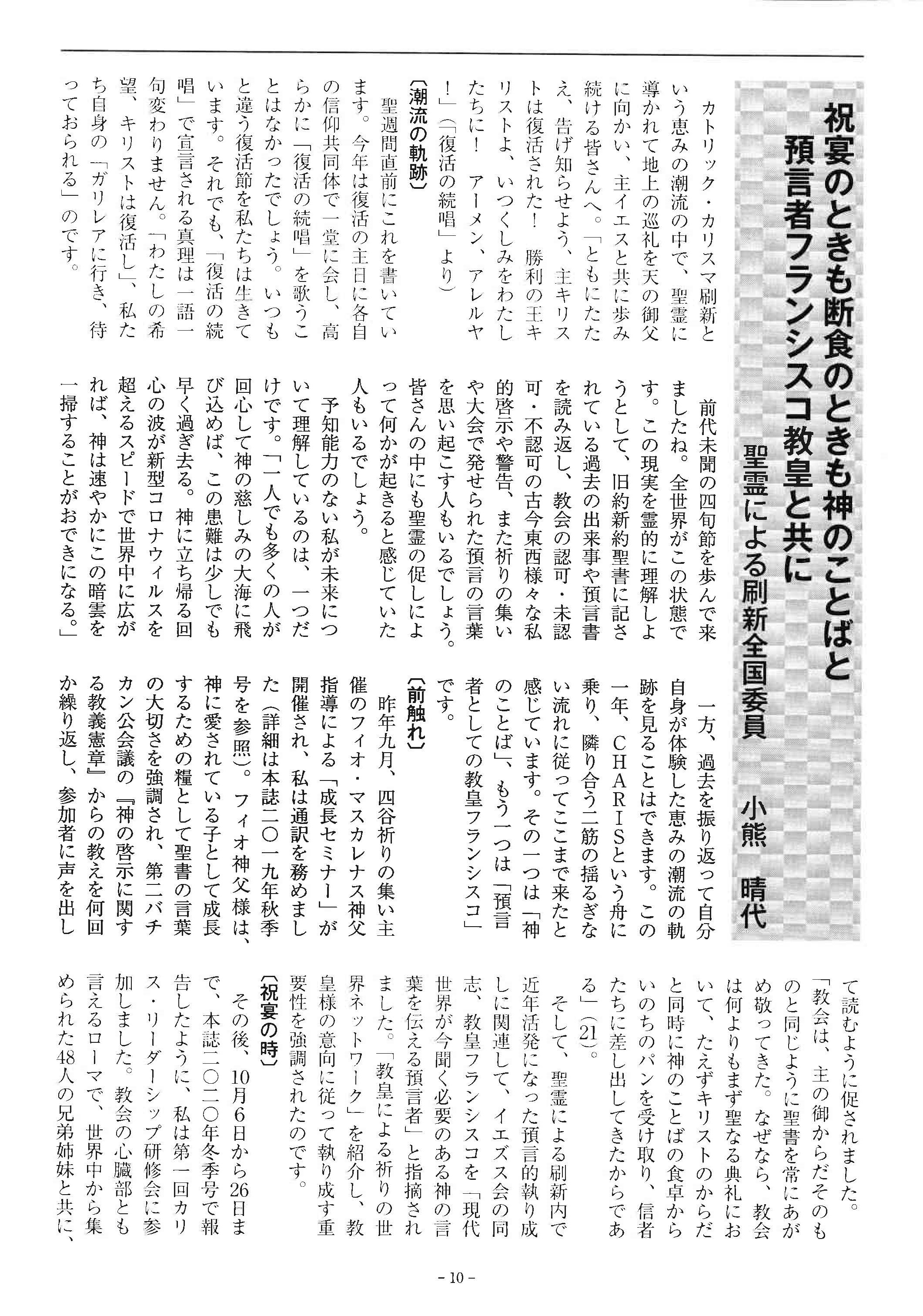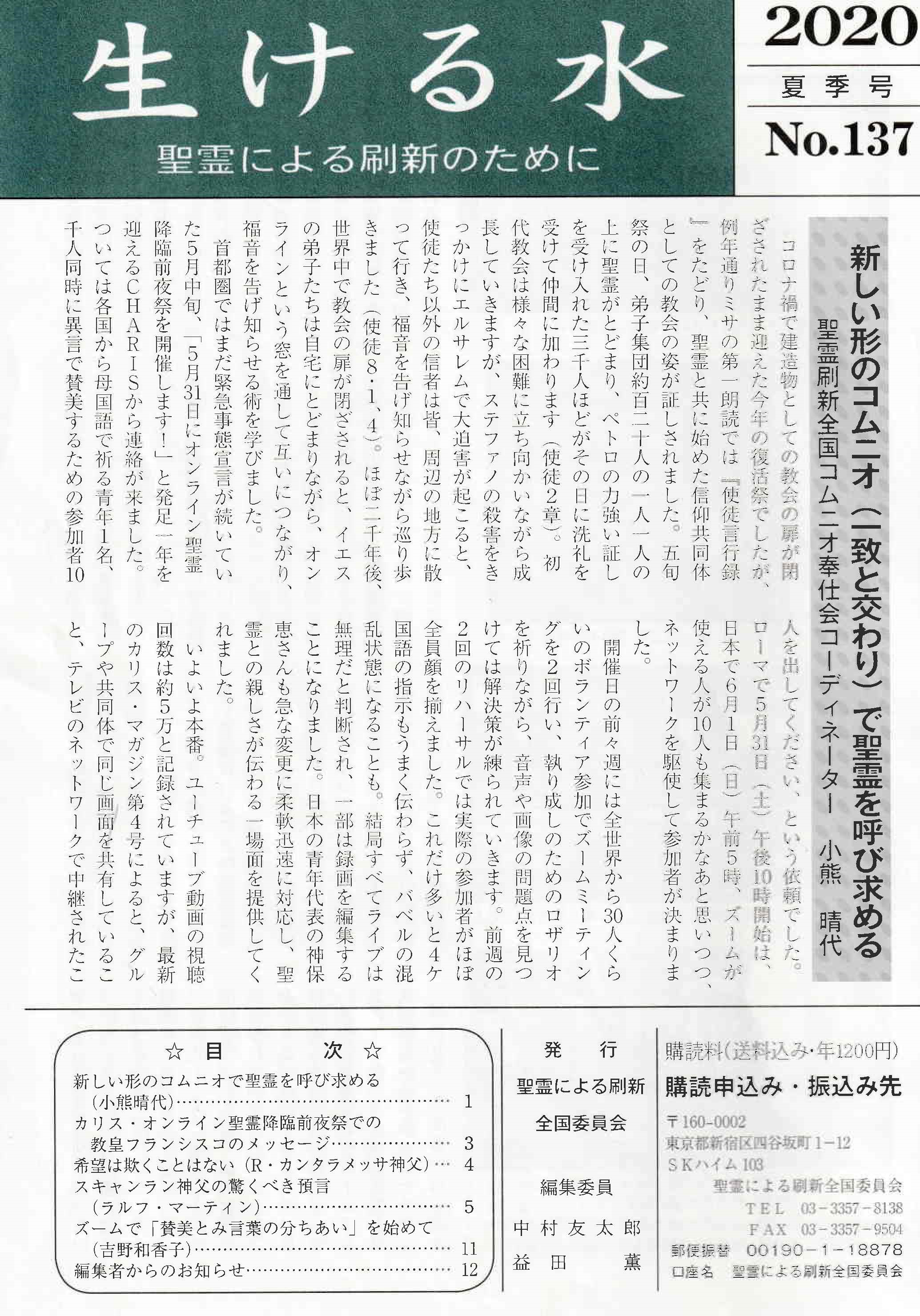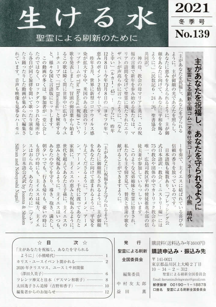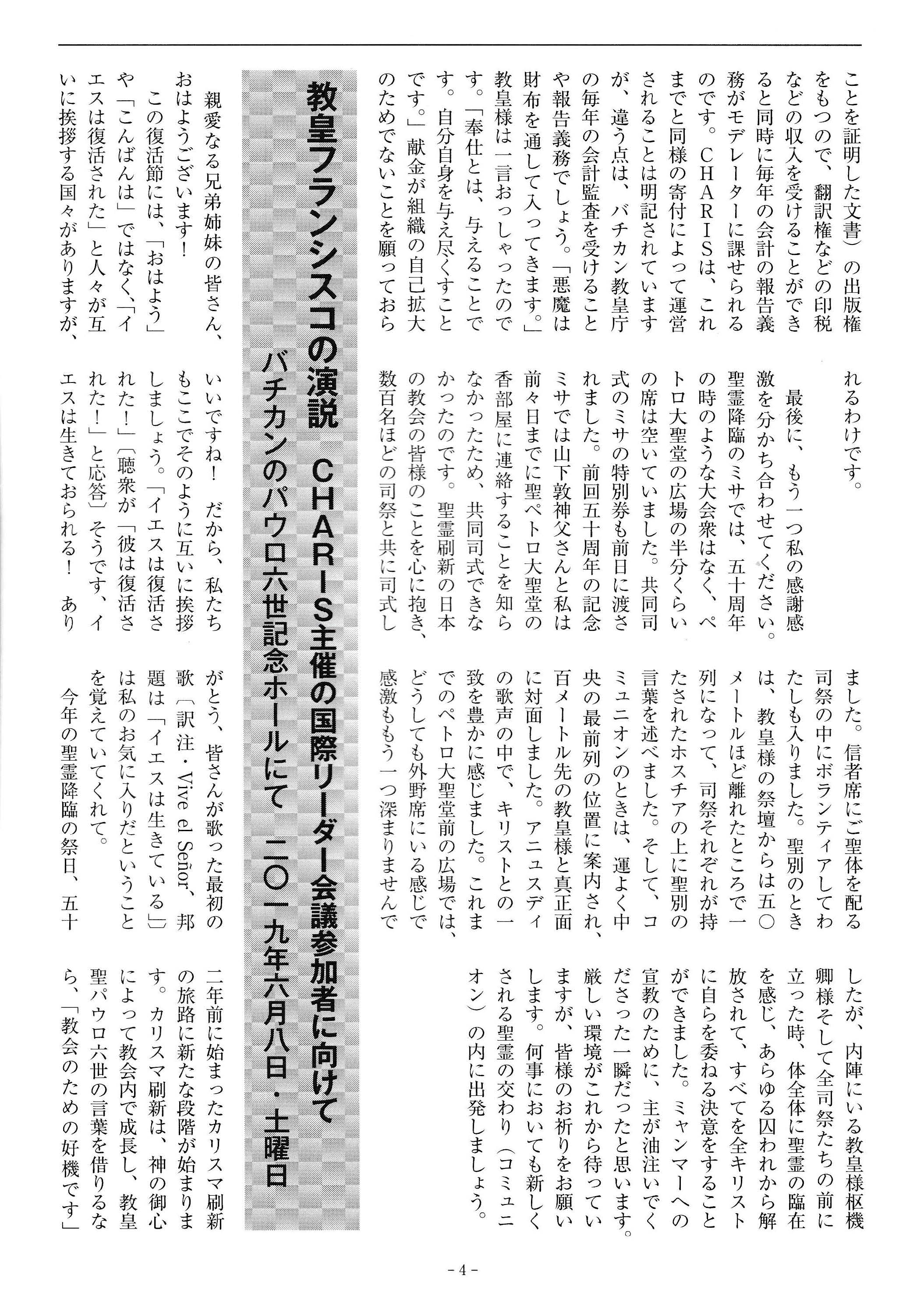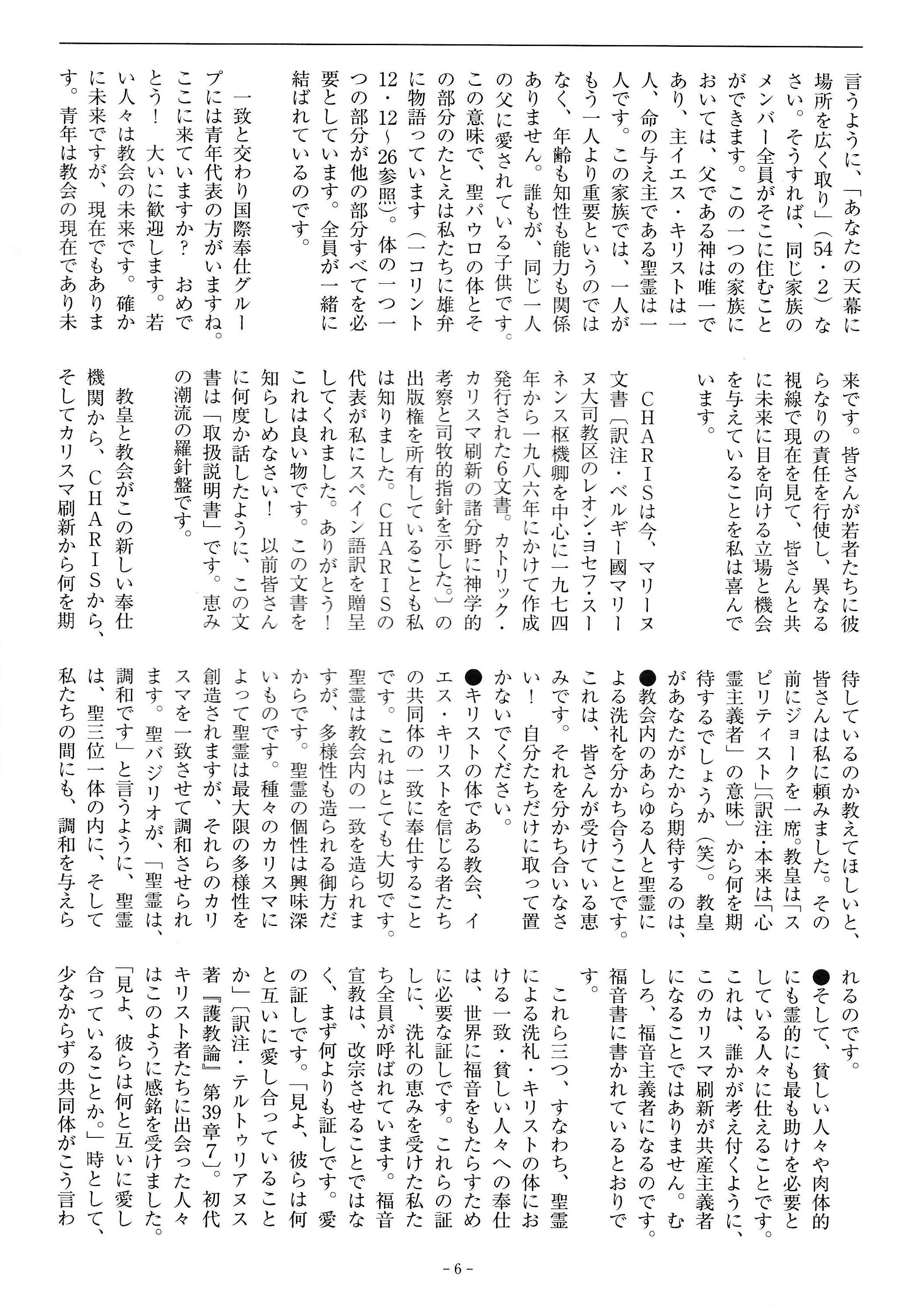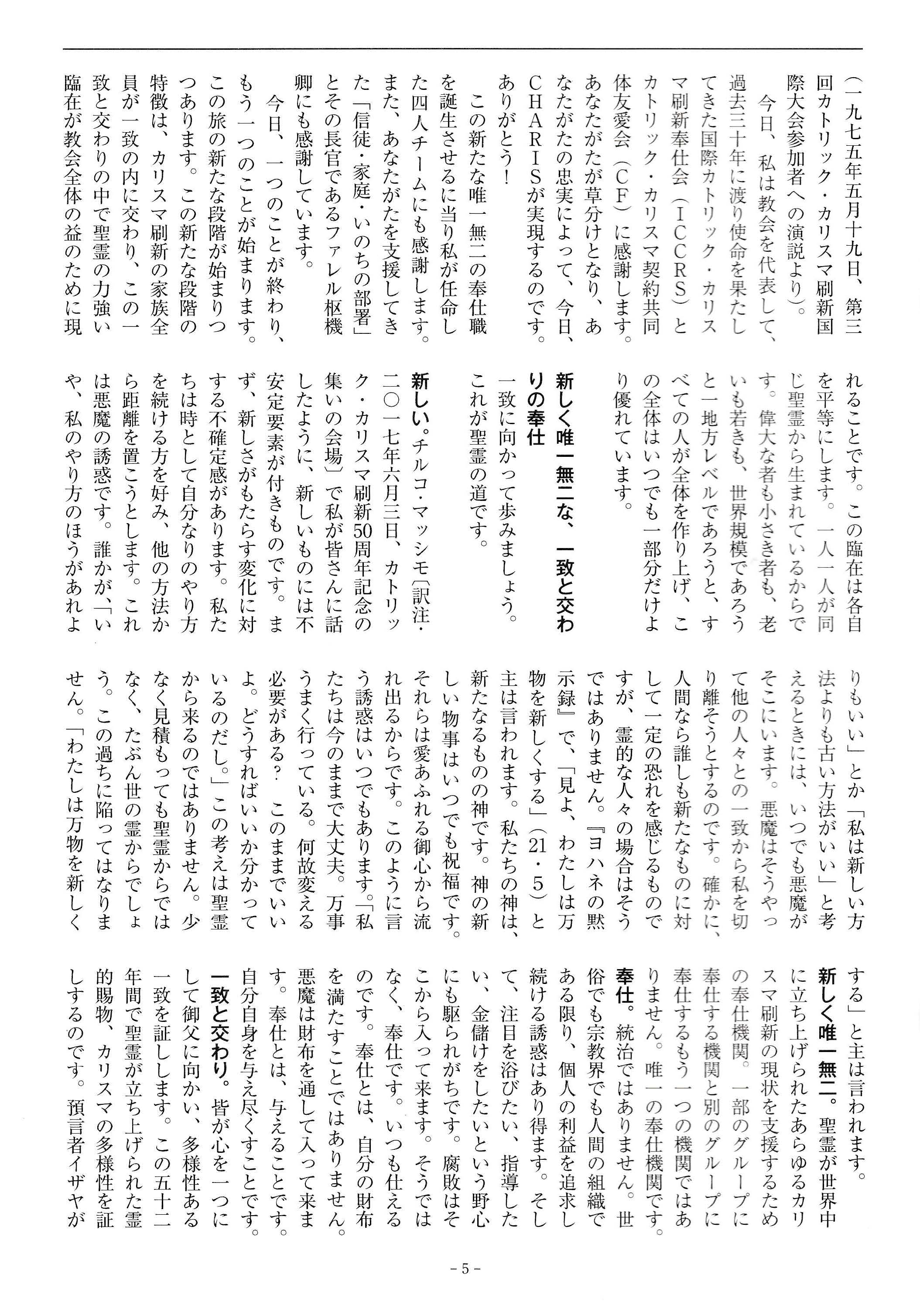 今この時は、カトリック・カリスマ刷新の私たちが恵みの潮流の最も純粋な源泉に立ち帰る機会です。その源流が地表に湧き出たとき、キリスト教世界の他の人々の目に私たちは賛美の民、アレルヤの民と映ったのです。