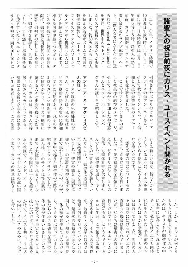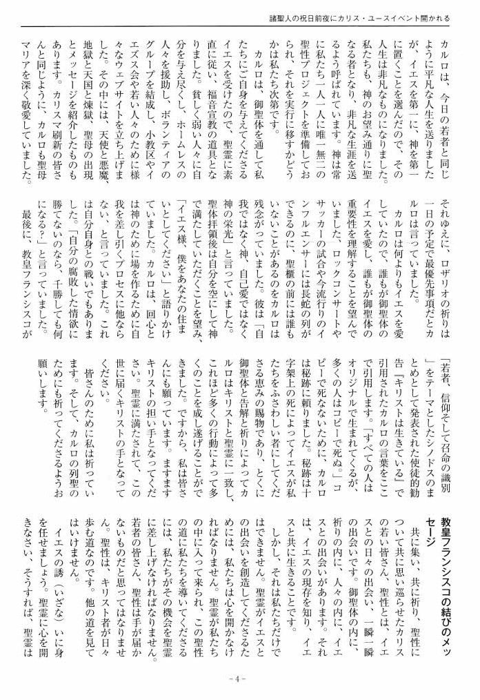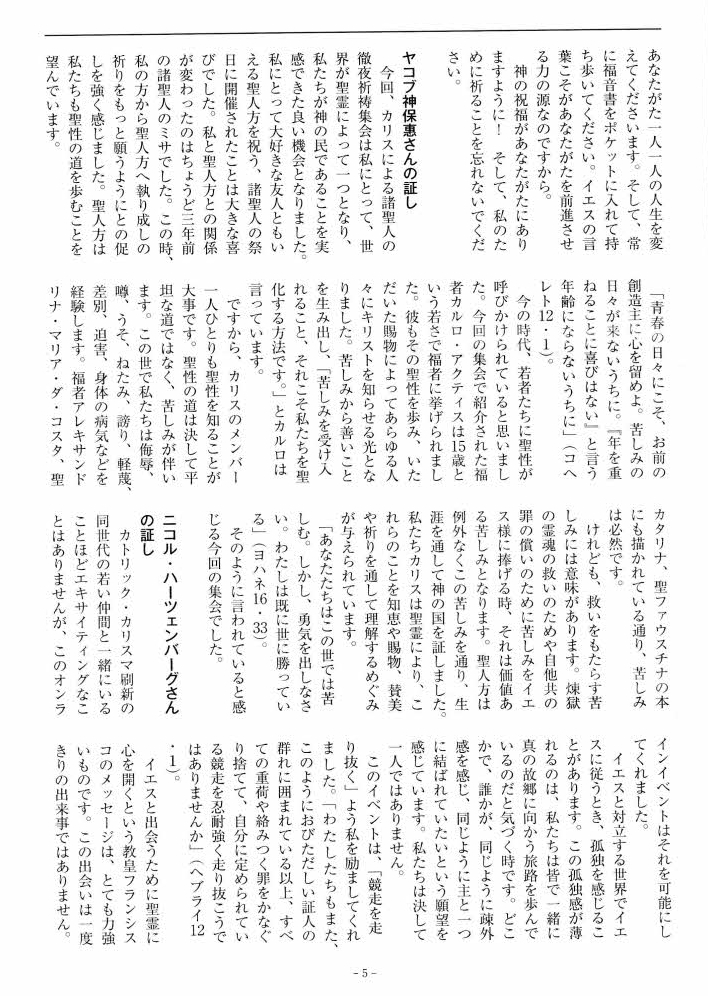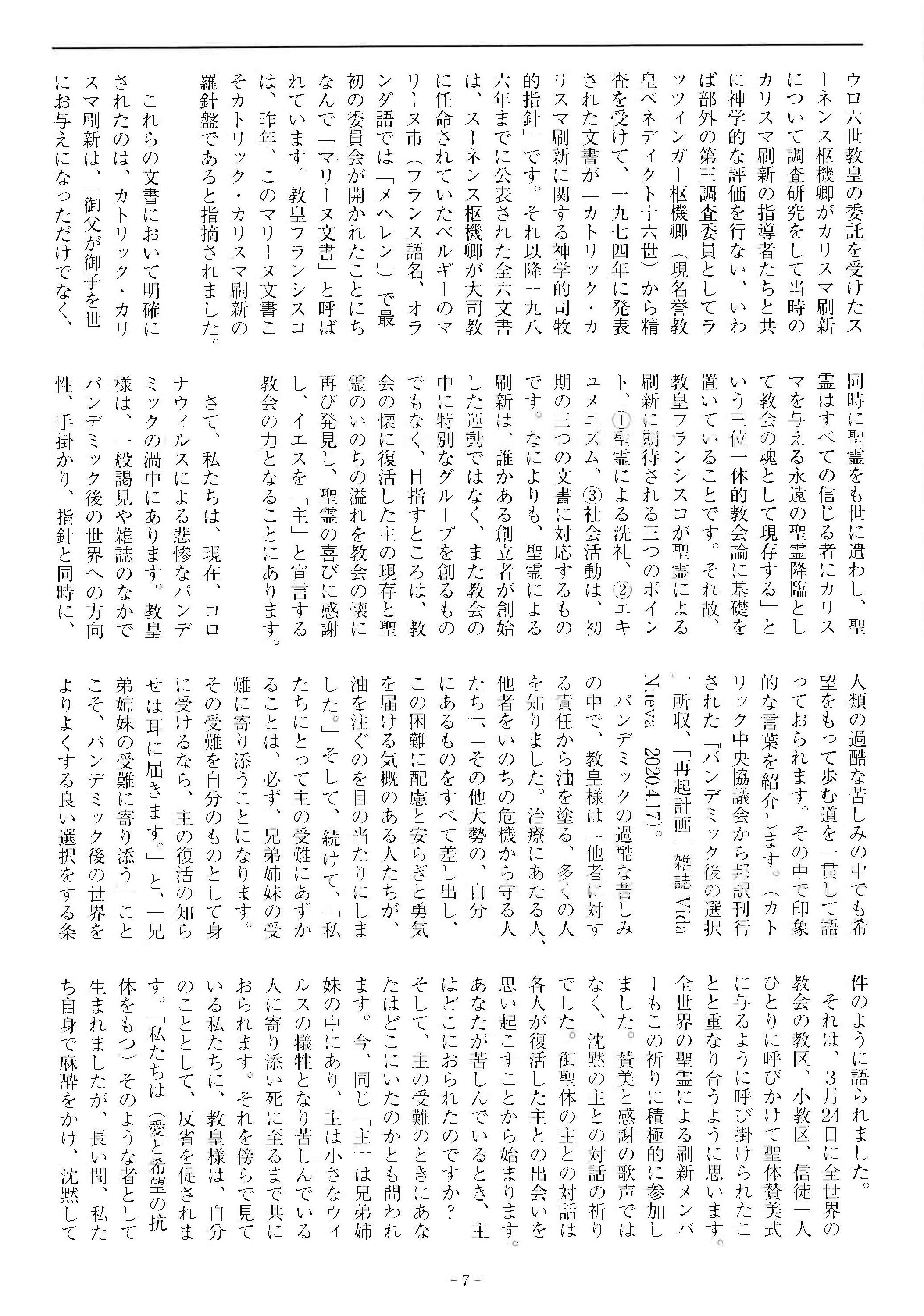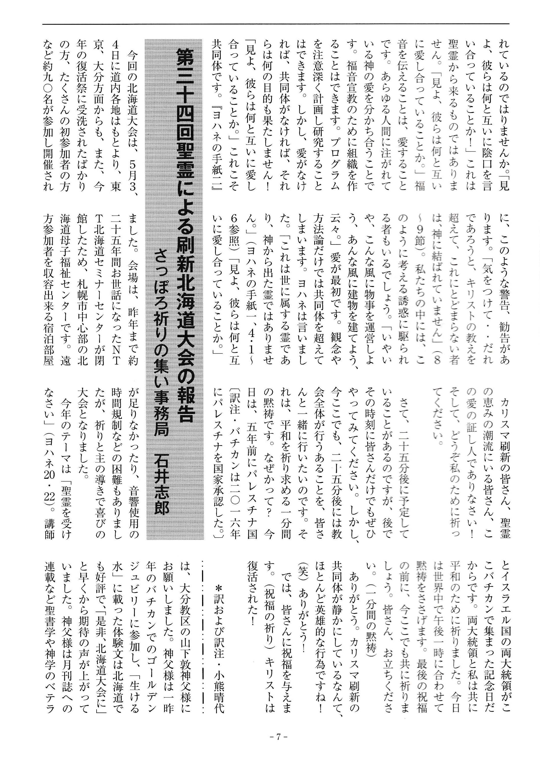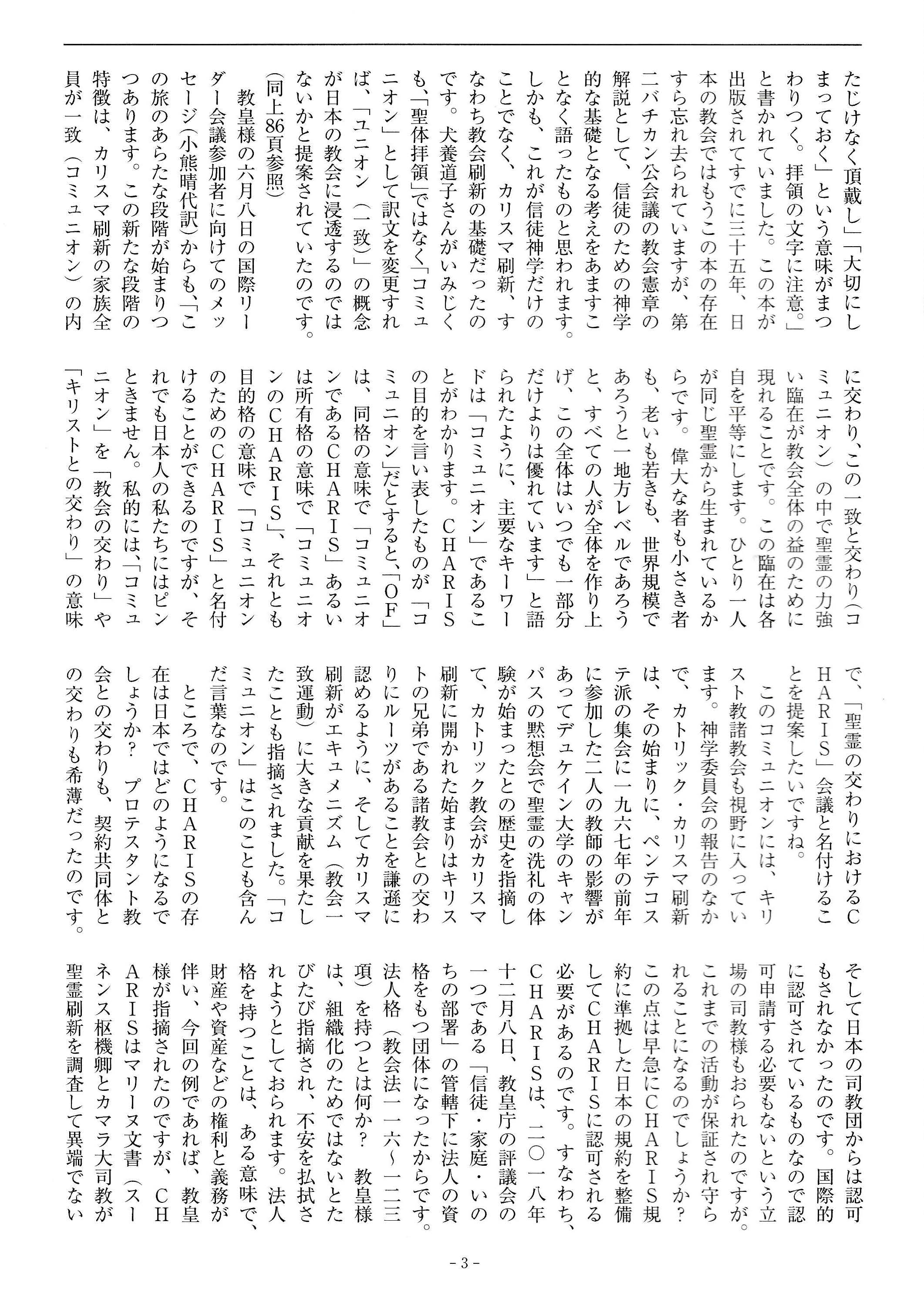 今この時は、カトリック・カリスマ刷新の私たちが恵みの潮流の最も純粋な源泉に立ち帰る機会です。その源流が地表に湧き出たとき、キリスト教世界の他の人々の目に私たちは賛美の民、アレルヤの民と映ったのです。